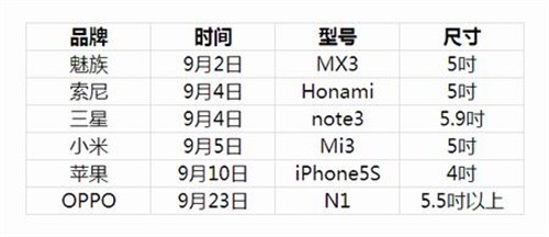 今年9月各厂商发布新品的尺寸统计