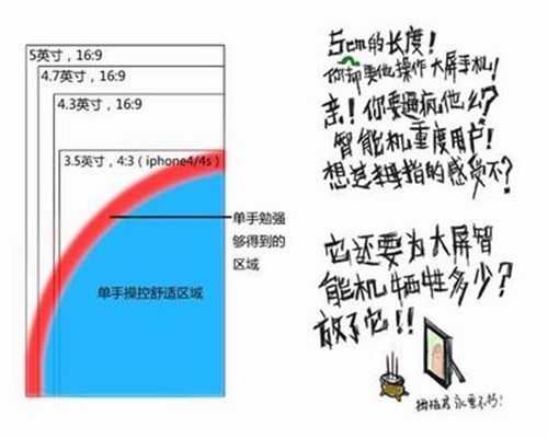 国内一些媒体和意见领袖已经发现,大屏手机的操控已经在2013年成为继电池续航问题之后,用户吐槽最多的问题。“Galaxy Note 2今儿又摔了”、“公交车上用大屏真是伤不起啊”等话题频繁出现在各大论坛和社交网络上。上海一位陈姓经销商告诉我们,如今顾客在购买大屏手机时,总会询问单手操作是否方便,大屏手机的单手操控问题已经开始成为影响顾客消费的关键性因素。