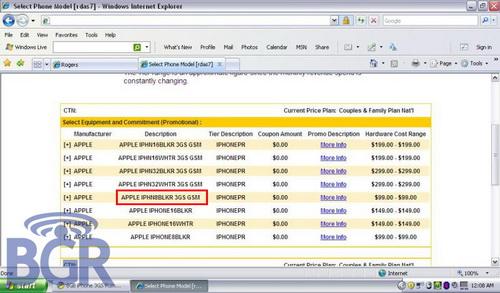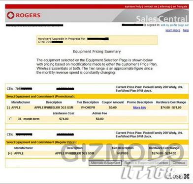 近日,有关苹果将推出8GB版iPhone 3GS 的消息在网络上传的沸沸扬扬,特别是在加拿大运营商Rogers官方网站上的频繁曝光激起了广大苹果粉丝的热烈讨论。而在时隔几天之后,一位来自Rogers的内部工作人员向互联网放出了一张有关硬件升级销售系统的屏幕截图,其中传闻已久的iPhone 3GS 8GB版本赫然在列。