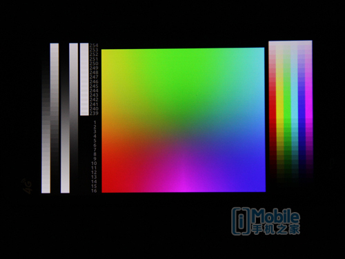 屏幕色彩过渡柔和,黄色显示偏弱。在256灰阶测试中结果显示,华为G620256级别灰阶显示黑色饱和度到7级,白色饱和度达到252。