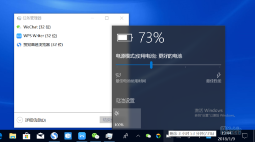 可以看到截图,在拔下适配器使用了接近1个半小时之后,电池的剩余电量是73%,显示的剩余时间也只有3小时53分钟。需要说明的是,这期间小编使用主要程序就是任务管理器中的浏览器、WPS和微信,电源管理也调节的是更为看重续航的模式。Core i7-7Y75这样一颗酷睿M的升级CPU,其性能本身是相对有限的,这点从机身并未配置风扇也可以看得出来,选择这样一颗CPU,基本都是出于对便携和续航的妥协,灵越5280的续航表现,小编只能说差强人意。