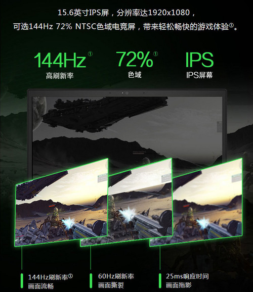 屏幕 :15.6英寸 1920*1080 72%NTSC色域覆盖 144Hz刷新率(IPS)