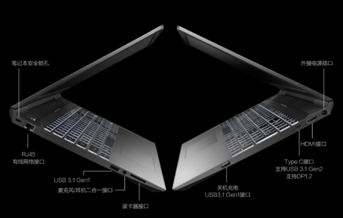可以看到,在颜值方面下了比较高的成本,窄边框也比其他的窄边会更极致一些,带来的结果就是显卡并没有能上到GTX1060,最终保持在了GTX 1050Ti。不过因为轻薄设计,其散热方面的压力也不小,这里需要说明一下,虽然显卡核心的温度确实居高不下,甚至有降频的风险,但其表面温度高温区域和游戏时手掌的常规放置区域重叠面积不大,算是一个好消息。