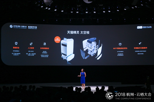 除此之外,还带来一款产品:天猫精灵太空梭,这是一款医院使用的服务型机器人。它除了天猫精灵功能外,还有60个可以弹出的独立药舱,医护人员向病房投放药品时可以精准抵达。针对医院无菌或者不能接触实物的操作,天猫精灵太空梭支持手势感应和语音直接交流。
