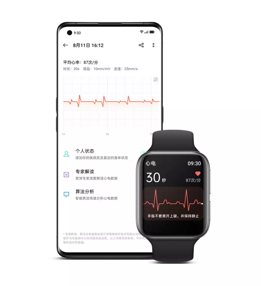 ECG也就是大家常说的心电图,OPPO Watch ECG版采用单导联设计,具备医疗级测量精度,通过了国家药品监督管理局(NMPA)认证,是国内首款通过二类医疗器械注册认证并正式上市的智能手表。