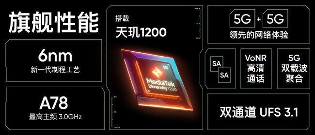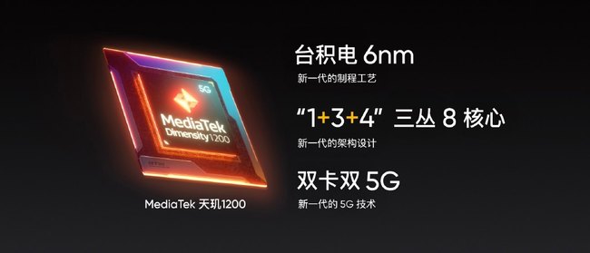 性能是realme 真我GT Neo的一大亮点,其搭载了联发科最新天玑1200旗舰芯片,采用6nm工艺制程打造。CPU为1+3+4三丛集设计,基于Cortex-A78架构的超大核最高主频可达3.0GHz,配合Mali-G77MC9 GPU及六核MediaTek APU 3.0,拥有出色的性能基础。