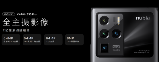 努比亚Z30 Pro重新定义行业多摄影像系统:集合6400万像素超感光OIS主摄、6400万像素120度超广角主摄、6400万像素人文主摄三枚顶配主摄,以及800万OIS潜望长焦镜头为一体,打造出2亿像素四摄组合的全主摄影像系统。