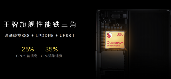性能方面,搭载高通骁龙888+UFS3.1+LPDDR5的黄金铁三角组合,并引入旗下红魔游戏手机在散热方面的强悍基因,搭载全新立体多维液冷散热系统,内置50um石墨片和VC液冷散热组合。