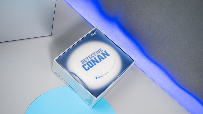 OPPO Enco Free2柯南限定版包装盒采用了半透明收藏盒设计,侧边和底部有镭射怪盗基德人物立绘,正面的半透明开窗表面正是经典台词“真相永远只有一个”,开窗透出了内部的蓝白主色调,还能看到“DETECTIVE CONAN(名侦探柯南)”字样,同样为蓝白配色,与怪盗基德服装相匹配。