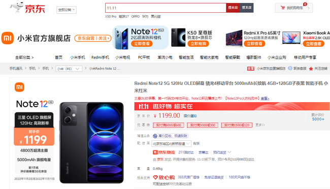 京东手机11.11,让低价更实在。既然是京东11.11期间,那么手机折扣不能放过,京东手机11.11折扣热销榜可以帮助消费者快速找到促销力度合适的产品,方便消费者直观看到并选择。截至11月8日10点的折扣热销榜单可以看到,排在第一位的是Redmi Note 12,到手价1199元起。Redmi Note 12搭载三星OLED屏幕,带来沉浸体验,获得SGS低蓝光认证,更护眼,同时内置5000mAh大电池,支持33W快充,续航无忧,消费者可以放心使用。此外,子夜黑、时光蓝和净瓷白三款配色也为消费者带来不同选择。