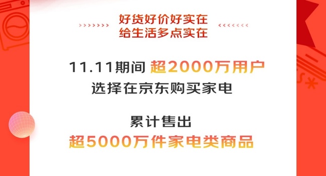 11月11日晚24时,2022年京东11.11全球热爱季完美收官。今年11.11,京东持续发挥新型实体企业“以实助实”的增长效能,打造了实体经济高质量发展的重要增量场。其中,在家电领域,京东家电不仅以实在商品、实在价格和实在服务赢得消费者信赖,更助力众多厂商、商家、线下门店获得实在增长。11.11期间,超2000万用户在京东购买超5000万件家电产品,超多品牌成交额同比增长超50%。