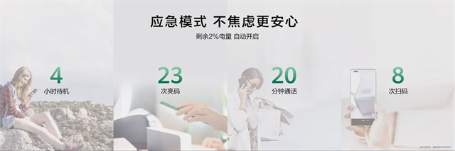 同时,现在人们外出最担心的就是手机电量问题,随时随地的电量焦虑总是让人猝不及防,华为nova11 Pro内置4500mAh电池并支持100W快充,可实现更快速的充电体验。应急模式的自动开启,继续提供待机4小时,或扫码8次,或通话20分钟,让你在电量仅有2%的时候依然不会焦虑。